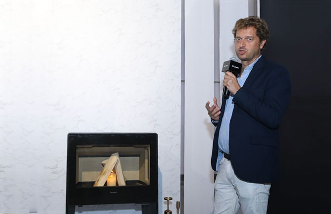 隨著主持人的開場介紹,活動正式展開。遠(yuǎn)道而來的意大利AK47 聯(lián)合創(chuàng)始人兼銷售總監(jiān)芭芭拉女士、西班牙Hergom市場總監(jiān)German先生,意大利PALLZZETTI市場總監(jiān)Paolozulian先生向現(xiàn)場來賓們介紹了他們引以為豪的壁爐產(chǎn)品。